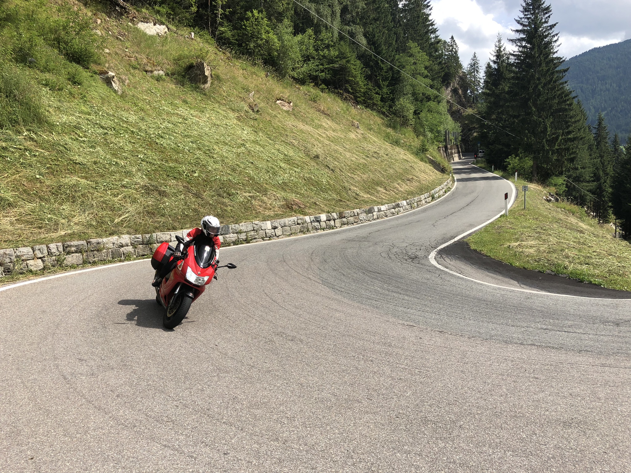 De volgende pas ligt ook weer meteen in het verschiet. Bij km stand 135 rijd je de Hahntenjoch (1.894m) op. Deze schitterende pas geeft je 30km lang vele mooie bochten en uitzichten over de Oostenrijkse Alpen. Na deze pas volg je de route door de verschillende dalen, waarbij het uitzicht fantastisch blijft. Bij km stand 213 rijd je de Timmelsjoch (2.509m) op en over naar Italië. Met zijn hoogte van 2.509m behoort deze pas tot de hogere passen in de Alpen. Voor deze pas wordt tol geheven à €14,00 enkele reis voor de motor (prijspeil 2017). Boven op de pas, bij km stand 226, is er een motor museum gevestigd. Ook een mooie plek voor een koffiestop bij goed weer. Deze pas geeft je 40km lang stuur plezier.