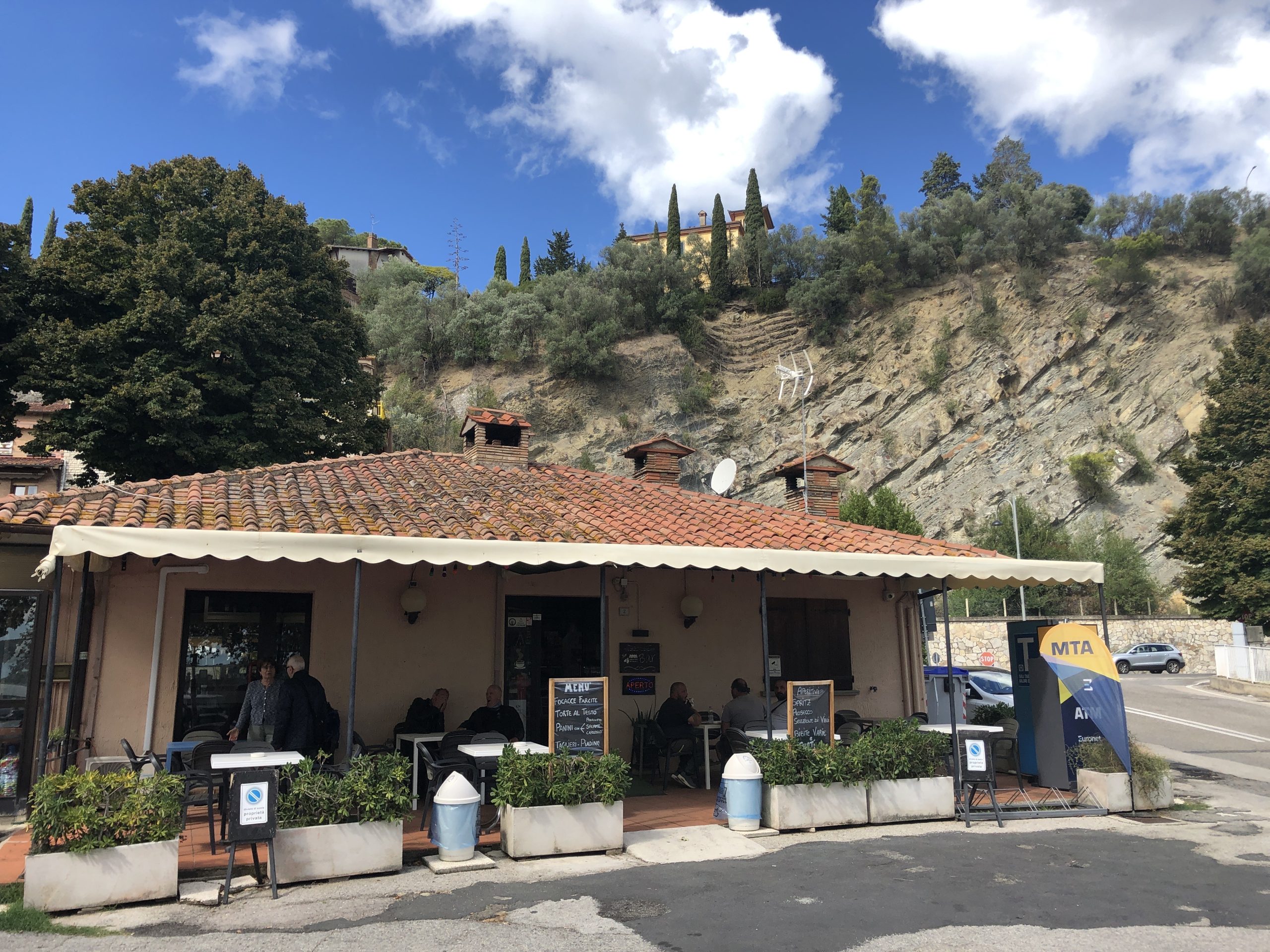 Tip: bij supermarkt MD in Contrada Ponte Rosso kan je wat broodjes en tomaten kopen. Dan een stuk doorrijden tot je aan je rechterhand in de bossen een prachtige picknickplaats ziet liggen met heel veel tafels. Echt doen! Daarna weer door naar Vicari en Alia, leuk voor een drankje en dan weer door naar Geraci Siculo, waar ons hotel op een hoogte van 1100 meter ligt.
