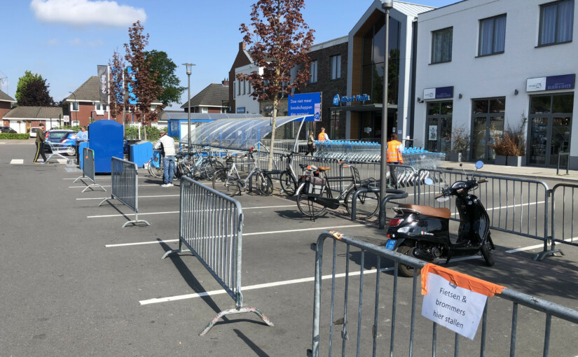 Bij Appie zijn maatregelen getroffen i.v.m. het corona virus. Gescheiden looppaden en verplichte winkelwagentjes.