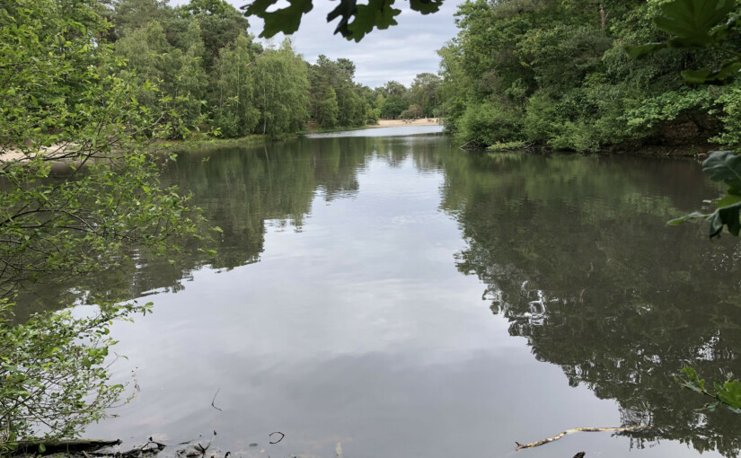 Door aanhoudende droogte staat het water overal laag en dat zie je bij de verschillende vennetjes heel goed.