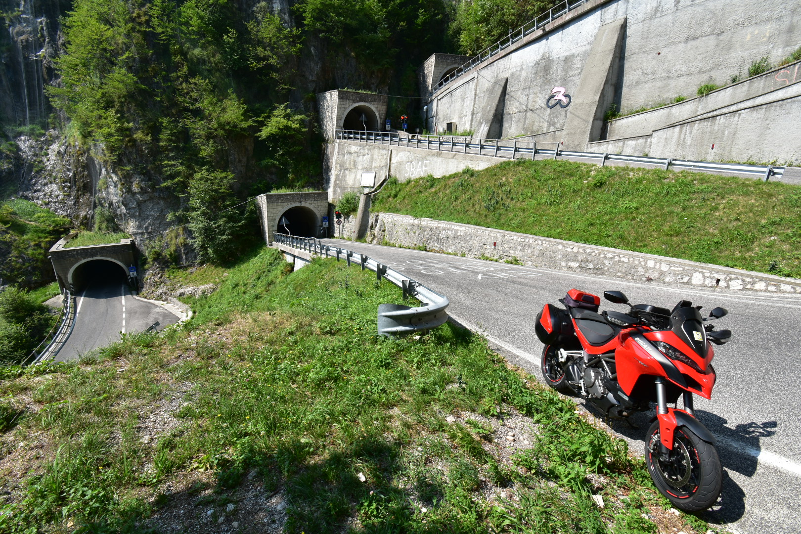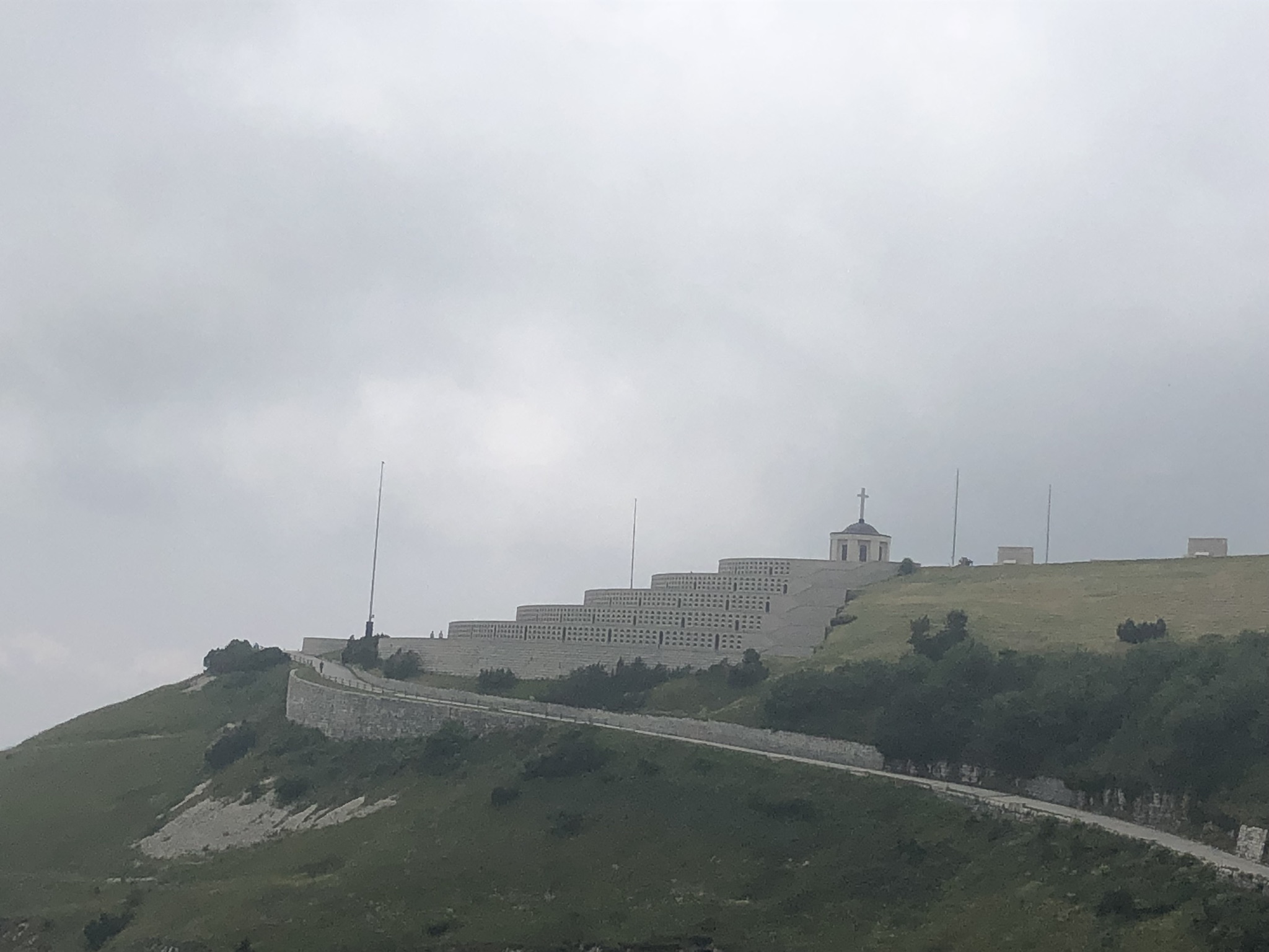 Onderweg naar Bologna pakken we een paar mooie bergpassen. De laatste pas voordat we de Dolomieten verlaten is de Monte Grappa. Een mooie pas en bovenop de berg kijkje mooi…
