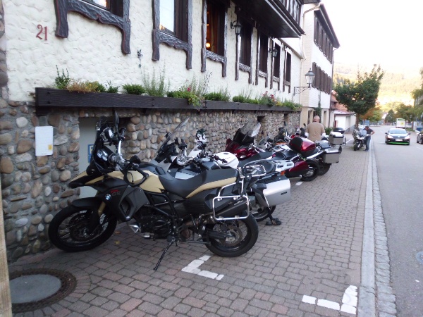 Parkeren bij hotel Le Maronnier in Rencurel. Vanuit dit hotel zijn we de Vercors aan het verkennen verkennen. De motoren kunnen mooi geparkeerd worden op het terras direct voor het…