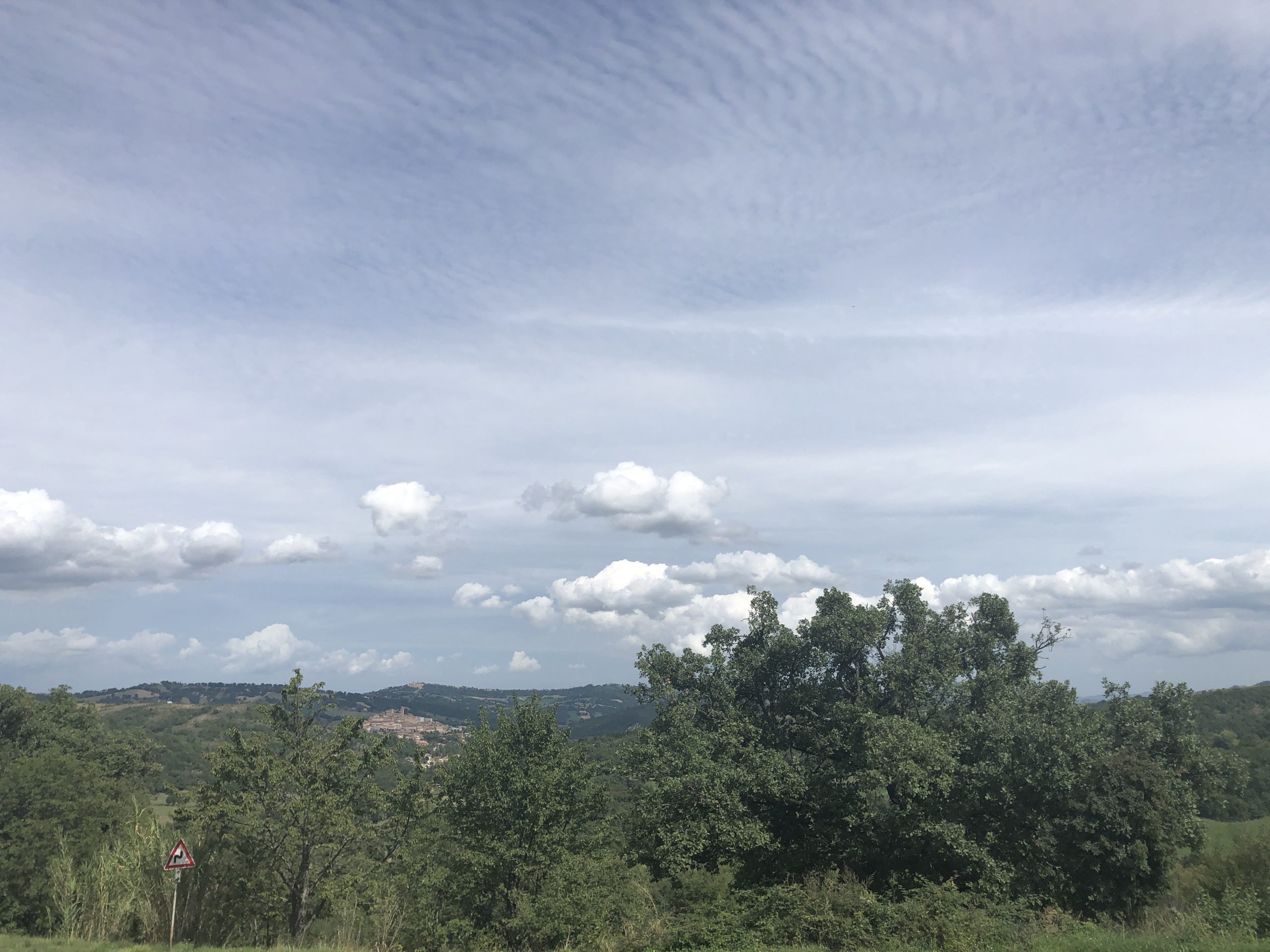 Onderweg in het hart van Italie. Mooi uitzicht over het uitgestrekte heuvellandschap met mooie typisch Italiaanse dorpjes.