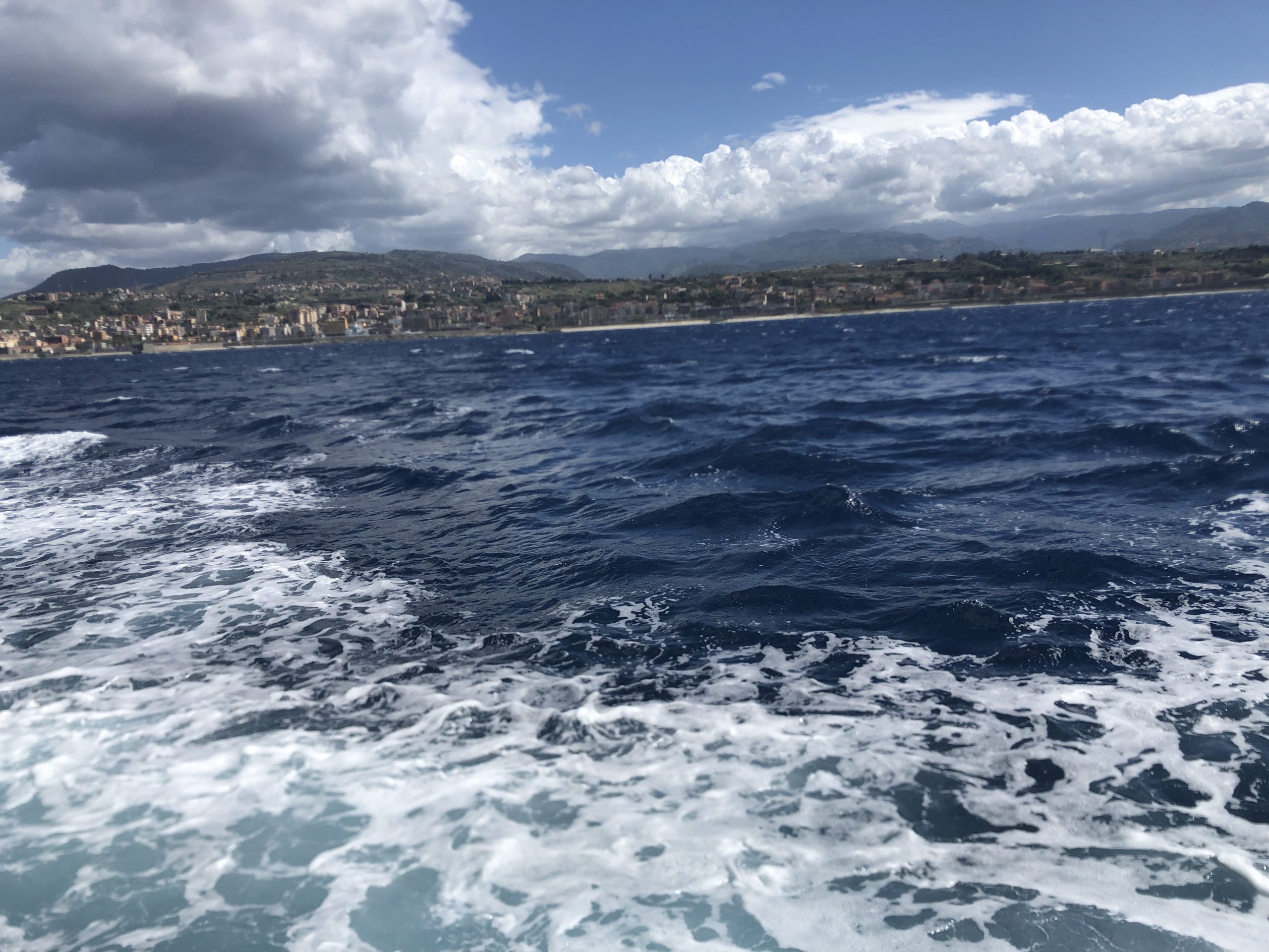 Alweer de laatste rit op het eiland. We rijden langs de oostkust naar Messina waar we weer de ferry nemen naar het vasteland. Dit deel van de kust ziet er werkelijk uit alsif je op een tropisch eiland bent. Kilometerslange boulevards met palmbomen en leuke beach bars. Het strand zelf echter is veelal kiezelstenen.