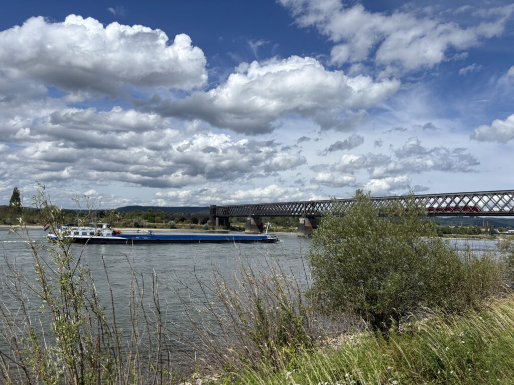 We zijn naar Urmitz gereden en staan op een camperplaats pal aan de Rijn. Mooi scheepjes kijken. Langs het water ligt een fietspad en mooi aangelegde groenstroken met voldoende zitgelegenheid.