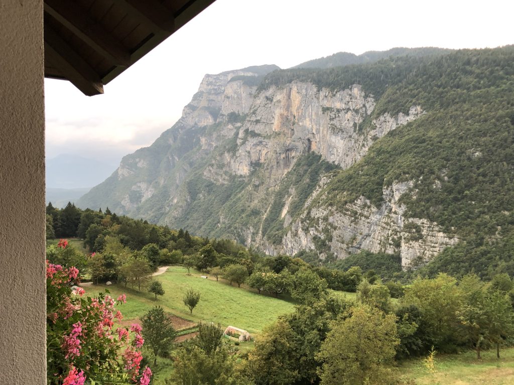 Om 17.00 gearriveerd bij het hotel in Fai del Paganello. Er was wat verwarring omdat de route eindigde bij het verkeerde hotel. Na enig zoekwerk toch het juiste hotel gevonden. Het is knap warm dus snel een biertje. Mooi uitzicht vanuit de hotelkamer.