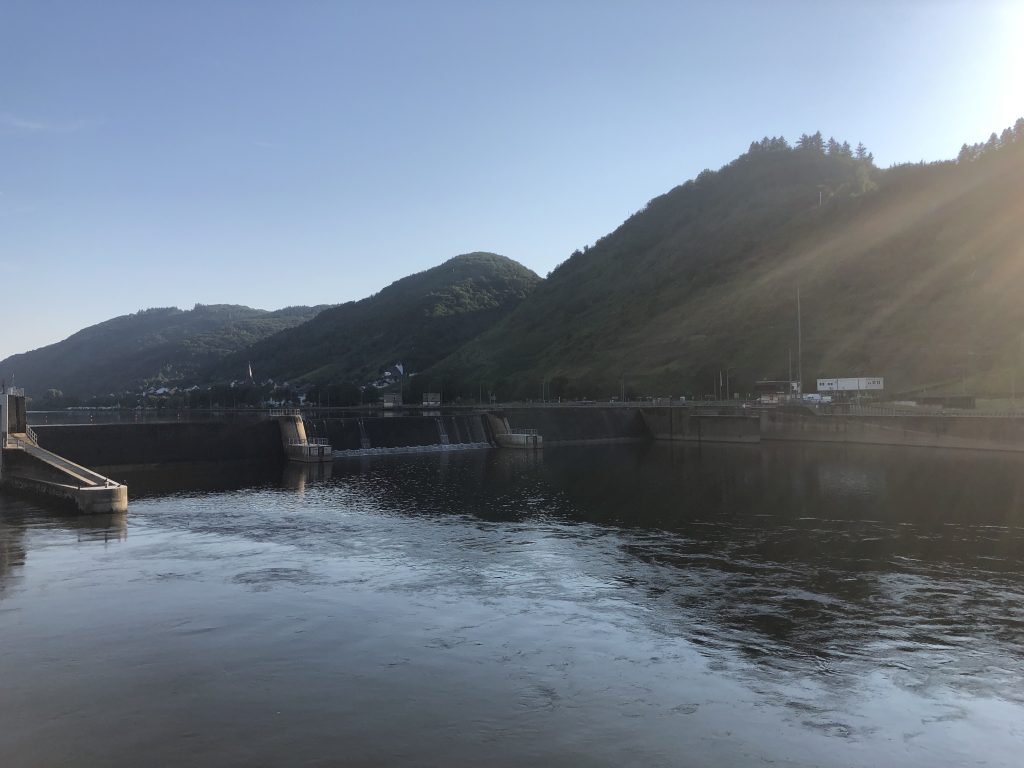 Als eerste bestemming vinden we een mooie en ruime camperplaats direct aan de Moezel. Het is vandaag ontzettend warm, moment om te relaxen in de schaduw.